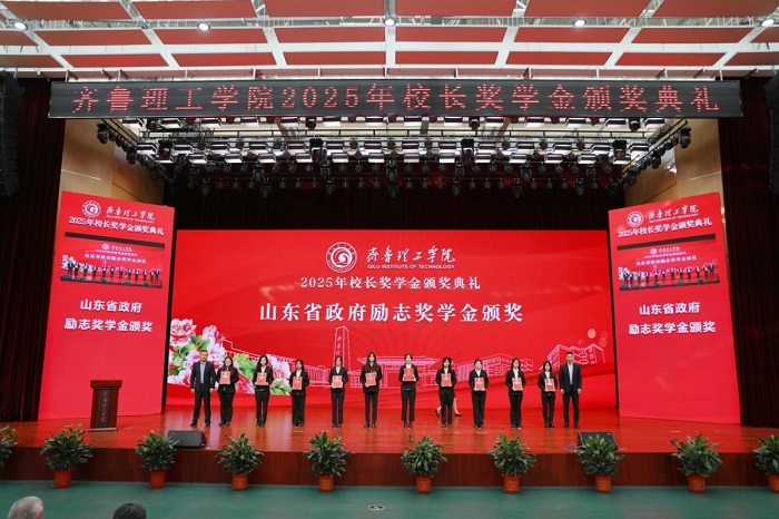 The 2025 President’s Scholarship Award Ceremony of QIT was held at the Cultural and Sports Hall of Jinan Campus on December 24. President Chang Cuiming attended the ceremony, along with other school leaders, responsible persons from teaching units and relevant departments, award-winning students, and student representatives. Vice President Hu Yang presided over the ceremony.