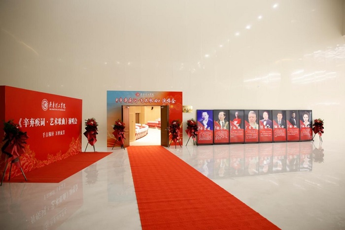 On November 12, the concert "Eternal Legacy of Jiaxuan: Art Songs from Xin Qiji’s Ci Poetry"(千古稼轩 万世流芳《辛弃疾词·艺术歌曲》) thrilled audiences with a breathtaking performance at Mingde Hall, Jixia Building. The event drew nearly 1,000 attendees, including distinguished guests such as Song Huanxin, former Deputy Secretary of the Shandong Provincial Committee for Higher Education and former Party Committee Secretary of Qufu Normal University; Xie Anqing, former Vice President of Qufu Normal University and former Deputy Party Committee Secretary of Jining University; Zhao Lin, Standing Committee Member of Zhangqiu District Party Committee, Minister of the Publicity Department, and Secretary of the District Education Party Working Committee; Zhi Jingyang, Head of the Arts Section, Publicity Department of Jinan Municipal Committee; Xu Fang, Standing Committee Member and Deputy District Mayor of Zhangqiu District; Wang Dengfeng, Second-Level Researcher of the Publicity Department of Zhangqiu District; Song Yizhou, Party Group Secretary and Director of the Zhangqiu District Culture and Tourism Bureau; Song Chuan Chao, Party Group Secretary of the Zhangqiu University Park Management Service Center; Chang Cuiming, Chairman and President, along with other university leaders and nearly 1,000 faculty and student representatives.