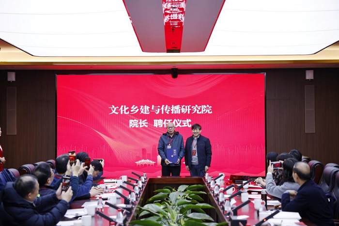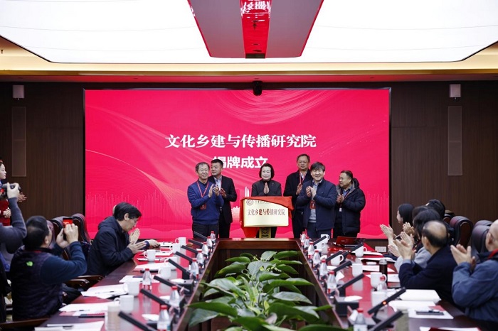 On December 18, the inaugural meeting of the "Research Institute for Cultural Rural Construction and Communication" and the Seminar on County-Level Cultural "Two Innovations": Theory, Methods and Practice of Qilu Institute of Technology was held at its Jinan Campus. Qiu Yihong, Director of the National Arts and Sciences Planning Project Management Center, Peng Jindi, President of Shandong Radio and Television Association, Pang Chunjie, President of Shandong Reportage Literature Society, Sun Meihua, President of Shandong Cultural and Creative Design Industry Association, Zhang Fangheng, Chairman of Heyuan Intelligent Technology Co., Ltd., Huang Gang, General Manager of Great Wall Guanglian (Shandong) Cultural Development Co., Ltd., Xu Cuilan, Secretary-General of Shandong Online Audio-Visual Program Service Industry Association, Lü Bing, Chief Expert and Director of the Content Operation Center of Qilu Evening News • Qilu Yidian, as well as deans, experts and scholars from relevant schools of journalism and communication of Shandong University, Ocean University of China, Shandong Normal University, Shandong University of Technology, Qufu Normal University, Qingdao University of Technology, Ludong University, Linyi University, Shandong Youth University of Political Science, Shandong Jianzhu University, Heze University and other universities, were invited to attend the meeting. Zhang Gengling, Executive Vice President of Qilu Institute of Technology, and Vice Presidents Shan Chengjuan and Zhang Xinghua attended the meeting.